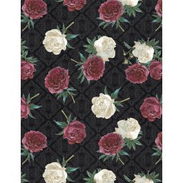 Crimson Blooms — Throw Quilt: 59-1/2" x 74-1/2"