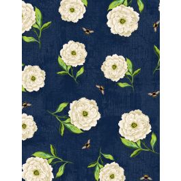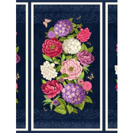 The beautiful Floral Serenade floral panel on navy is featured in this simply bordered wall quilt.