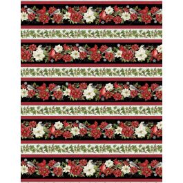 This “Medley in Red” throw quilt focuses on fussy-cut cardinal blocks around the large panel, then bordered by the repeating stripe – a beautiful quilt design.
