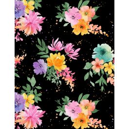“Floral Party” is featured in a new throw quilt with fussy-cut flowers, 6” custom and 12” star blocks, and a repeating stripe border. At 62-1/2” x 74-1/2”, it can also be used as a twin quilt or topper.