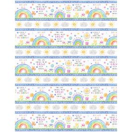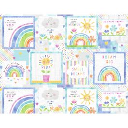 The twin quilt project for “Raindrops & Sunshine” features all 8 panel squares & bordered by the repeating stripe – very cute for a “big girl bed”.