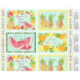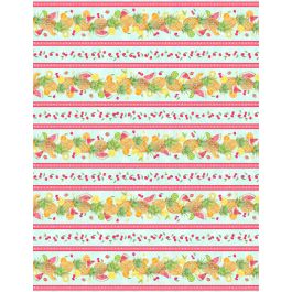This “Squeeze the Day” table-topper is designed around the placemat panels, then bordered by the fabulous plaid & the repeating stripe – a colorful “tablescape” for starting the day!