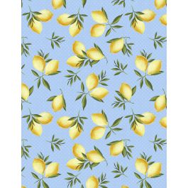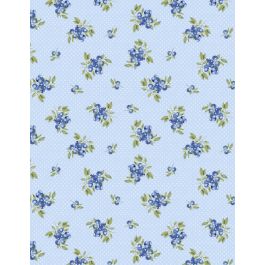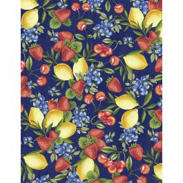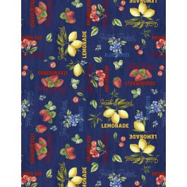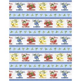 This all-new table topper project for “The Berry Best” features the repeating stripe border with blues & yellow.