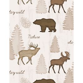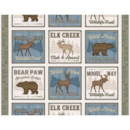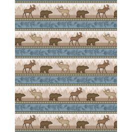 Our “Wildlife Trail” project is a throw quilt with a variety of 12” blocks built around the bordered panel squares, then surrounded by a mitered repeating stripe border. At 61” x 73”, it can be a twin bed topper or a large throw.